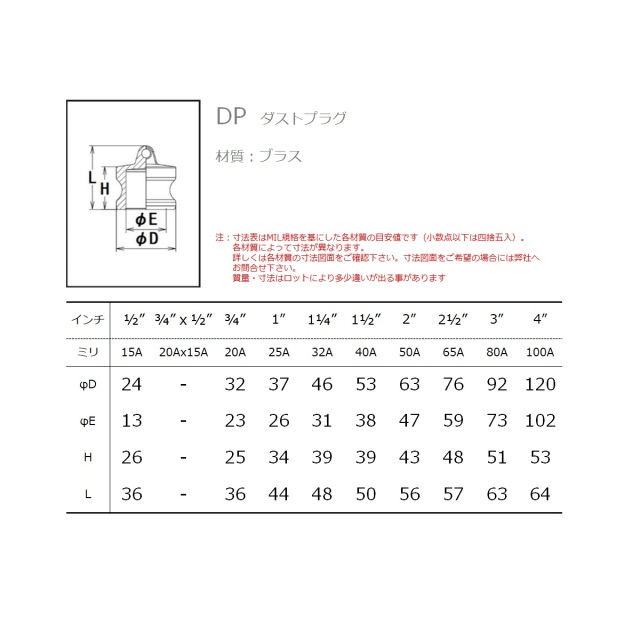 【注意】 A-A-59326(MIL-C-27487)を基準に製作しております。 サイズ:15A (1/2”)の製品はMIL規格ではありません。他社製品との互換性はありませんので、カプラー(メス)は弊社の同材質の製品をご利用下さい。 ご使用になる流体、圧力、温度等の条件により本体材質を選定してください。 取り付け時に、カプラー内に残圧がない状態でご使用ください。 紛失防止の為本製品と使用するカプラーにチェーンを取り付けることをお勧めします。